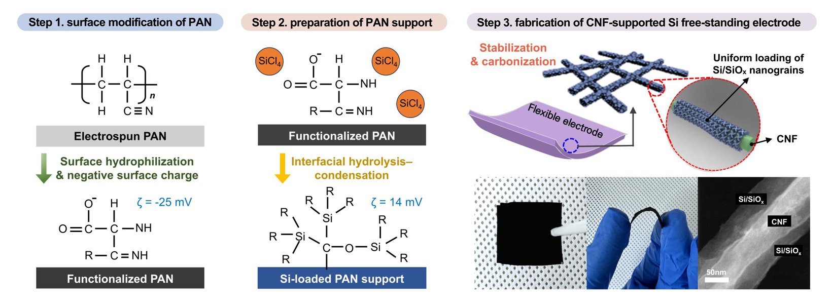 - CNF Network: Carbon nanofibers form a 3D porous matrix that accommodates silicon’s volume changes without mechanical failure